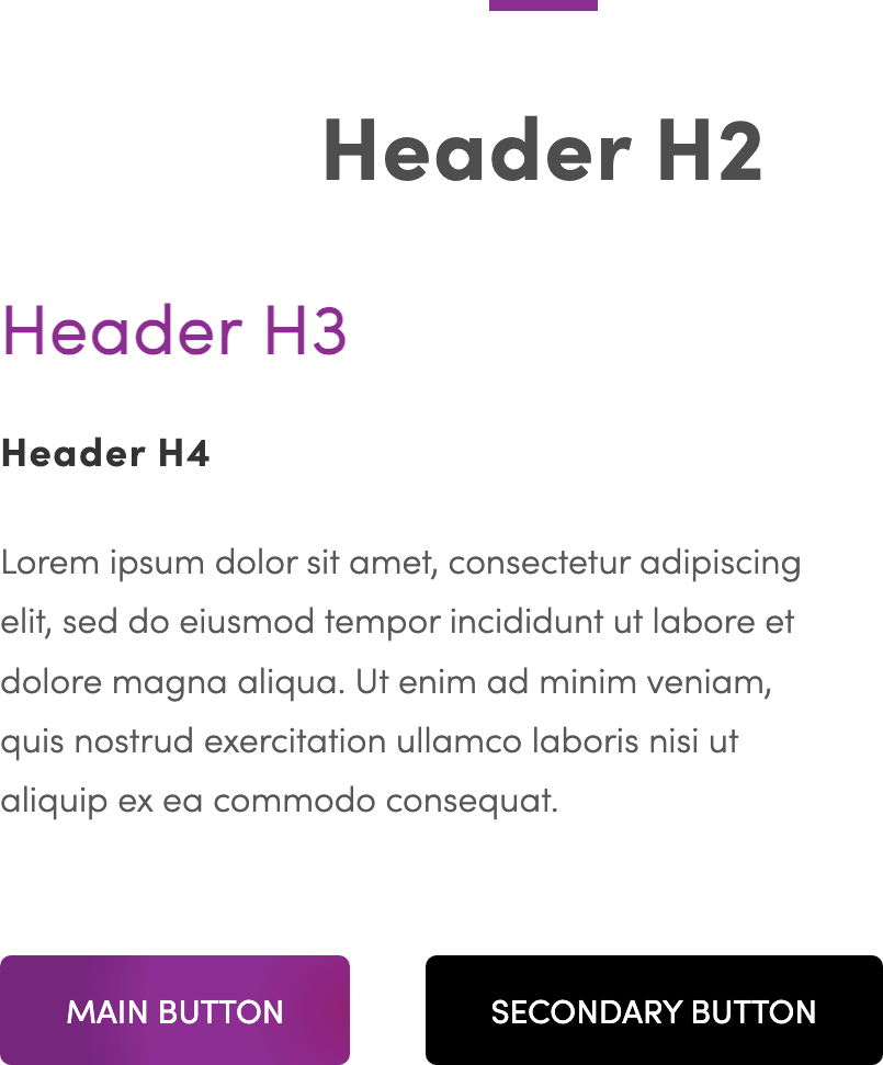 The next step was coming up with a design system based on the new branding and color schemes. I put this together and all was approved: